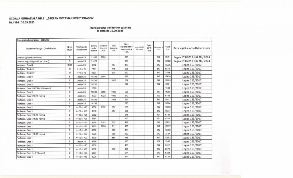 Transparența veniturilor salariale la data de 30 septembrie 2025